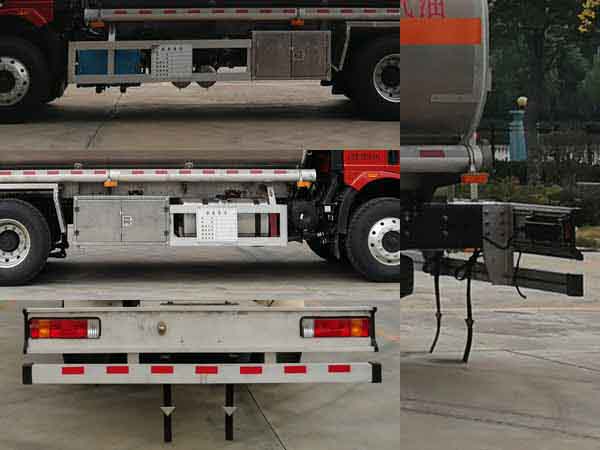 配置  1、該車適用于危險(xiǎn)品運(yùn)輸,運(yùn)送危險(xiǎn)貨物車輛類型為:FL型,類項(xiàng)號(hào):3。運(yùn)輸介質(zhì):汽油,密度:700千克/立方米。罐體有效容積24.5立方米,罐體外形尺寸(長(zhǎng)×寬×高)(mm):7200×2400×1750。整車外形長(zhǎng)與采用軸距/后懸對(duì)應(yīng)關(guān)系為(mm):10110/4600+1350/2760,10110/4800+1350/2560。2、側(cè)、后防護(hù)材料均為鋁合金,螺栓連接;后防護(hù)截面尺寸(寬×高)(mm)60×120,下邊緣離地高500mm。3、隨底盤選裝高頂駕駛室,選裝前圍和燈具。僅選用排氣管前置、限速裝置(限速79km/h)、前輪盤式制動(dòng)及子午線輪胎的底盤;安裝帶有衛(wèi)星定位功能的行駛記錄儀;ABS系統(tǒng)生產(chǎn)廠家:長(zhǎng)春瑞立科密汽車電子有限公司,型號(hào):CM4XL。采用發(fā)動(dòng)機(jī)與油耗值對(duì)應(yīng)關(guān)系為(L/100km):CA6DK1-32E6/37.47,CA6DK1-28E6/37.47。 該車后軸為采用空氣懸架.