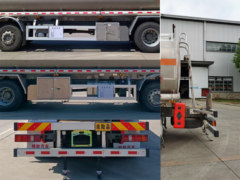 其它:1、該車適用于危險品運輸,運送危險貨物車輛類型為:FL型。準運介質最大密度:700千克/立方米,罐體總容量23.9立方米,罐體有效容積23.3立方米,罐體外形尺寸(長×寬×高)(mm):7500×2400×1650。僅采用軸距(mm):1800+4200,1800+4400,1800+5000。2、側防護材料為鋁合金,螺栓連接;后防護材料為Q235,螺栓連接,截面尺寸(mm)80×140,下邊緣離地高480mm。3、僅選用排氣管前置、限速裝置(限速80km/h)、前輪盤式制動及子午線輪胎的底盤,轉向輪安裝輪胎爆胎應急防護裝置,后軸采用空氣懸架。安裝帶有衛星定位功能的行駛記錄儀。EBS型號/生產廠家:EBS3/威伯科(上海)管理有限公司.發動機/油耗值(L/100km)對應關系為:MC07.25-60/32.43,MC07.27-60/32.43,MC07.31-60/32.43,MC07H.35-60/32.45,WP7H220E62/32.15,WP7H245E62/32.15,WP7H270E62/32.15,WP7H300E62/32.60,WP7H320E62/32.60。4、選裝ETC。隨底盤選裝駕駛室及前保險杠,選裝前后部組合燈具。罐體上部選裝上走道,第二軸選裝弧形膠制擋泥板或方形擋泥板,選裝左右側后部工具箱及左側工具箱樣式,選裝鐵制滅火器筒。
