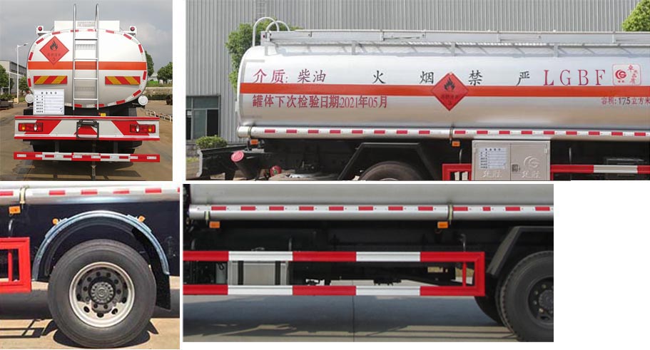 | 配置 | 1、該車適用于危險品運輸,運送危險貨物車輛類型為:FL型,類項號:3。罐體有效容積:12.7立方米,運輸介質:柴油、煤油、汽油,密度:830、800、700千克/立方米,罐體外形尺寸(長×寬×高)(mm):5700×2000×1400。罐體上部選裝上走道;選裝后部尾燈架樣式;選裝弧形擋泥板;選裝左側無工具箱。2、側,后防護材料均為Q235,螺栓連接;后防護截面尺寸120×60mm,下邊緣離地高500mm。3、僅采用軸距(mm):4700。后軸采用空氣懸架。隨底盤選裝駕駛室前面罩,選裝側窗玻璃;駕駛室頂部中間三個裝飾燈為選裝件;前霧燈為選裝件;駕駛室前臉擾流罩為選裝件。僅選用排氣管前置、限速裝置(限速80km/h)、前輪盤式制動及子午線輪胎的底盤;安裝帶有衛星定位功能的行駛記錄儀;ABS型號/生產廠家:3631010-C2000/東科克諾爾商用車制動系統(十堰)有限公司。發動機B6.2NS6B210油耗值為26.5 L/100Km。 該車后軸為采用空氣懸架. | ||