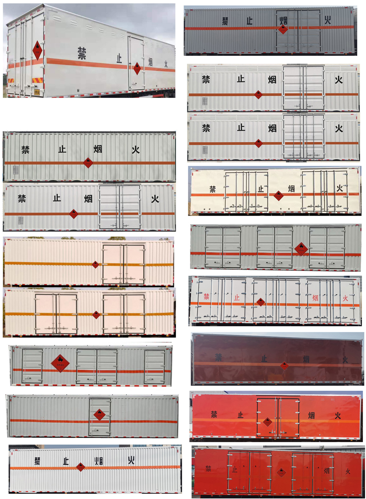 | 配置 | 1、該車適用于危險品運輸,類項號:3。2、側、后防護材料均為Q235,側防護螺栓連接;后防護焊接,截面尺寸(寬×高)(mm)60×120,下邊緣離地高480mm。3、僅采用軸距(mm): 1800+4575+1400。EBS系統(tǒng)生產廠家及型號為:威伯科汽車**系統(tǒng)(**)有限公司(EBS3),廣州瑞立科密汽車電子股份有限公司(CM-EBS)。僅選用排氣管前置、限速裝置(限速79km/h)、前輪盤式制動及子午線輪胎的底盤;安裝帶有衛(wèi)星定位功能的行駛記錄儀;發(fā)動機型號及油耗值(L/100km)為:WP7.270E61/37.47,WP7.300E61/37.47,WP8.320E61/38.07,WP8.350E61/38.07。后軸采用空氣懸架。轉向輪安裝輪胎爆胎應急防護裝置。尾板收起狀態(tài)水平長度為290mm,尾板質量為550kg。該車型可選裝ETC車載裝置.選裝后部無尾板;選裝側門型式及位置,選裝側門數量,選裝不開側門,廂體側面板選裝開百葉窗,選裝瓦楞板結構。廂體頂部封閉不可開啟。運輸具有**容器(瓶)包裝的物品。 | ||