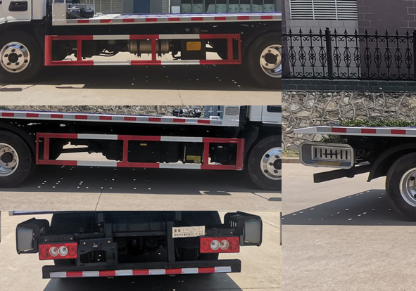 其它:該車主要用于道路清障,主要專用裝置為平板、絞盤、鋼絲繩、油缸.該車無(wú)托牽功能.側(cè)防護(hù)材料為Q235,螺栓連接;后防護(hù)材料為Q235,焊接連接;后防護(hù)截面尺寸(mm):100×50,下邊緣離地高420mm.ABS系統(tǒng)型號(hào):ABS-E;生產(chǎn)企業(yè):威伯科汽車控制系統(tǒng)(中國(guó))有限公司.ABS系統(tǒng)型號(hào):ABS-VI.E;生產(chǎn)企業(yè):廣州瑞立科密汽車電子股份有限公司.該車整備質(zhì)量對(duì)應(yīng)的配件包括隨車工具、三角墊木,不含備胎和滅火器.僅采用底盤3360mm和3600mm軸距改裝.