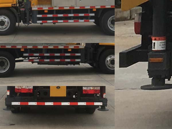 配置  該車用途為搶修電力、通訊、路燈等高空作業(yè),主要裝置為升降平臺,作業(yè)臂。側(cè)、后防護(hù)材料均采用Q235,側(cè)防護(hù)螺栓連接;后防護(hù)焊接,截面尺寸100×50mm,下邊緣離地高450mm。隨底盤選裝前面罩,前保險杠,前組合燈具。ABS型號/廠家:ABS/ASR-12V-4S/4M/襄陽東風(fēng)隆誠機(jī)械有限責(zé)任公司。
