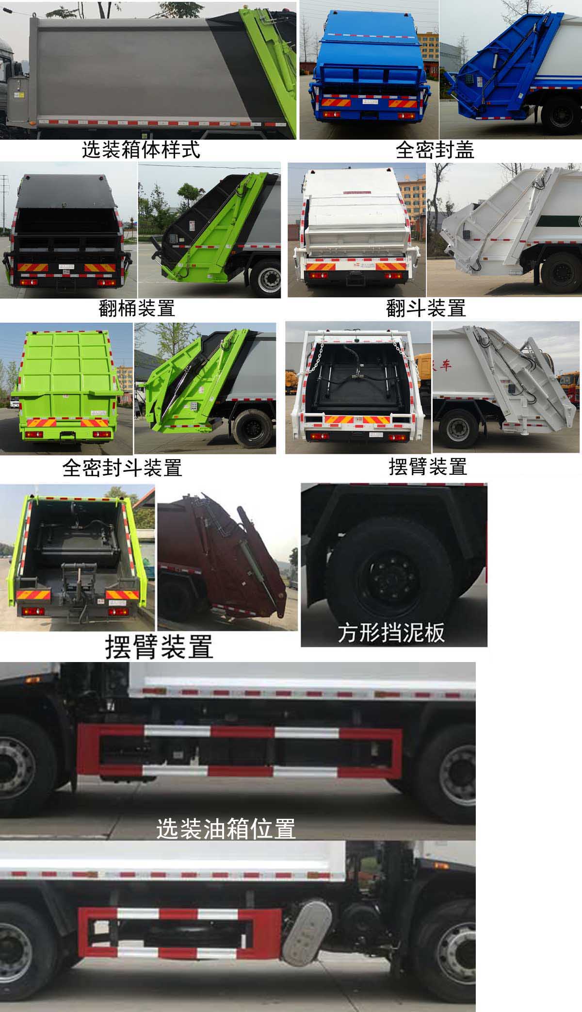| 配置 | 1、該車主要專用裝置由箱體、壓縮系統(tǒng)組成,用于垃圾的收集與清運。該車可選裝方形或弧形箱體,選裝全密封蓋裝置,選裝方形擋泥板,選裝后部工作裝置,選裝側(cè)防護樣式。選裝工作裝置時外形長/前懸/軸距/后伸對應關系為(mm):①無上料裝置:8670/1400/4500/-;8700/1430/4500/-;8870/1400/4700/-;8900/1430/4700/-;②全密封斗裝置和擺臂裝置:8870/1400/4500/200;8900/1430/4500/200;9070/1400/4700/200;9100/1430/4700/200;③翻桶裝置和翻斗裝置:9070/1400/4500/400;9100/1430/4500/400;9270/1400/4700/400;9300/1430/4700/400。僅采用4500mm,4700mm軸距。2、側(cè)防護采用冷彎型鋼/Q235,螺栓連接;后防護由專用裝置替代,下邊緣離地高:500mm。3、隨底盤選裝高度不同的駕駛室;選裝前霧燈;選裝駕駛室頂部裝飾燈;選裝駕駛室前面罩;選裝前保險杠及前部燈具,駕駛室前臉擾流罩為選裝件;駕駛室臥鋪側(cè)窗選裝裝飾板;選裝油箱安裝位置,選裝踏步結構。安裝帶有衛(wèi)星定位功能的行駛記錄儀。ABS型號/生產(chǎn)廠家:3631010-C2000/東科克諾爾商用車制動系統(tǒng)(十堰)有限公司,ABS 8/東科克諾爾商用車制動系統(tǒng)(十堰)有限公司, 4460046450/威伯科汽車**系統(tǒng)(**)有限公司。采用的發(fā)動機與油耗值對應關系為(L/100Km):DDi50E190-60/23.9,D4.5NS6B190/24.4,D6.7NS6B230/23.7,B6.2NS6B210/23.8,B6.2NS6B230/23.8。 | ||