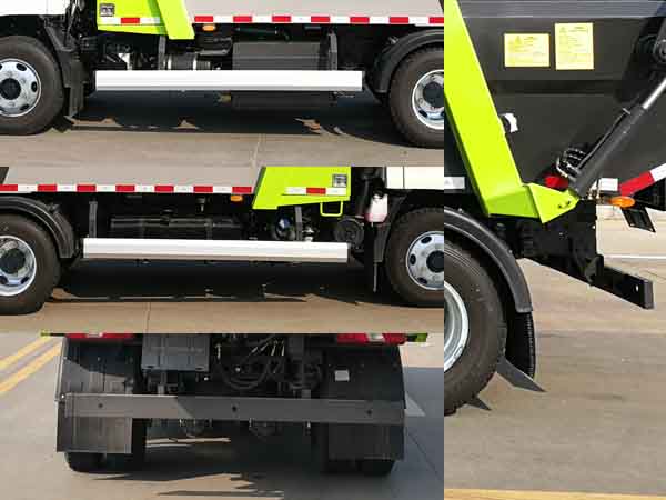 配置  后伸195mm,該車用于垃圾轉運,主要專用裝置為箱體,壓縮系統。側防護材料為鋁合金,螺栓連接;后防護材料為Q235,焊接,截面尺寸:120mm×50mm,離地高度:450mm。隨底盤選裝黑色輪輞。ABS系統型號:VIE ABS-II,ABS系統生產廠家: 浙江萬安科技股份有限公司。發動機JX4D306H的油耗值為14.5L/100km。