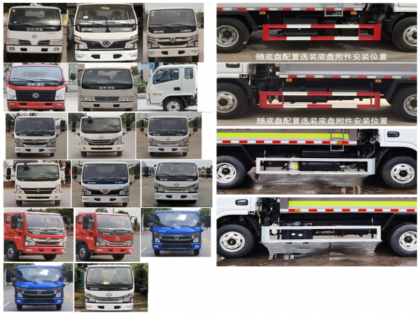 其它 | 該車主要專用裝置由箱體、壓縮系統(tǒng)組成,用于垃圾的收集與清運.側(cè)防護材料為冷彎型鋼/Q235,螺栓連接;后防護由專用裝置代替,下邊緣離地高450mm.選裝方形或弧形車箱;選裝箱體與駕駛室之間多路閥、液壓油箱、液壓管布置;選裝箱體前端爬梯位置;選裝電瓶位置;選裝多路閥罩;選裝填裝器外罩;選裝后密封蓋裝置.選裝不同工作裝置時外形長/后伸(mm)對應關系:①無上料裝置:6500/0,②擺臂裝置:6650/150,③全密封斗裝置:6650/150, ④半密封斗裝置及⑤翻桶裝置:6900/400.發(fā)動機與油耗值(L/100km)的對應關系為:CA4DB1-11E6/16.3,CY4BK161/16.2,CY4BK461/16.2,D20TCIF1/16.3,D20TCIF11/16.3,YCY24140-60/16.3,ZD30D16-6N/16.3,H20-120E60/14.9,Q28-130E60/15.9,CA4DB1-13E6/16.2,Q23-115E60/14.5.隨底盤選裝前面罩,前保險杠,前組合燈具,選裝排半駕駛室,選裝左右油箱位置,隨底盤配置選裝底盤附件安裝位置.僅選用軸距3308mm底盤改裝.選裝直接供電式ETC車載裝置.ABS型號/生產(chǎn)企業(yè):ABS/ASR-12V-4S/4M/襄陽東風隆誠機械有限責任公司.各發(fā)動機凈功率(kW)值如下:D20TCIF1:88,YCY24140-60:99,CA4DB1-11E6:79,ZD30D16-6N:115,CY4BK461:92,CY4BK161:102,Q23-115E60:82,H20-120E60:87,CA4DB1-13E6:93.Q28-130E60:93,D20TCIF11:88.隨底盤選裝氣壇子、尿素罐安裝位置.選裝電瓶安裝位置,選裝污水箱安裝位置.選裝填充器樣式.選裝后部工作裝置. | ||