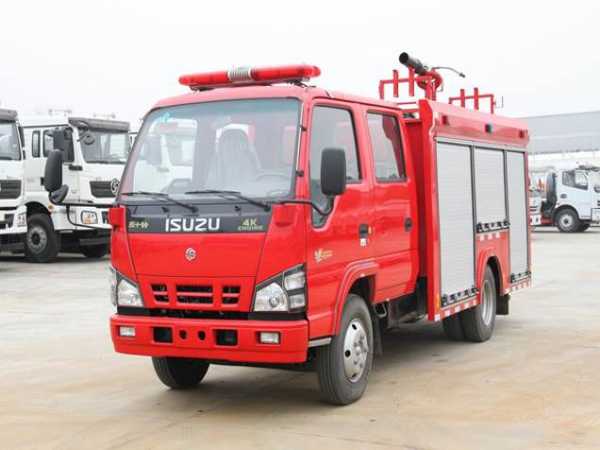 2噸消防車采用慶鈴汽車股份有限公司QL1070BUHWY 型二類汽車底盤,原裝雙排駕駛室,乘員2+3人,該車駕乘舒適輕便。上裝采用內(nèi)藏式水罐,整車載液量為1880kg。器材箱采用高質(zhì)量鋁合金卷簾門。底盤取力,發(fā)動(dòng)機(jī)型號(hào)為4KH1CN6LB,最大功率88kW,通過(guò)萬(wàn)向聯(lián)軸器驅(qū)動(dòng)安裝在汽車尾部泵房里的上海雄真CB10/30型常壓消防泵,可在1.0MPa下穩(wěn)定輸出30L/s的流量;車頂安裝威斯特PL8/24型消防炮,流量30L/s,對(duì)應(yīng)壓力0.8MPa,最大承壓1.3MPa,射程 水:≥60m 泡沫≥45m,可360°旋轉(zhuǎn)。該車具有軸距短、通過(guò)性強(qiáng)、綜合性能強(qiáng)、操控集中簡(jiǎn)便等特點(diǎn)。